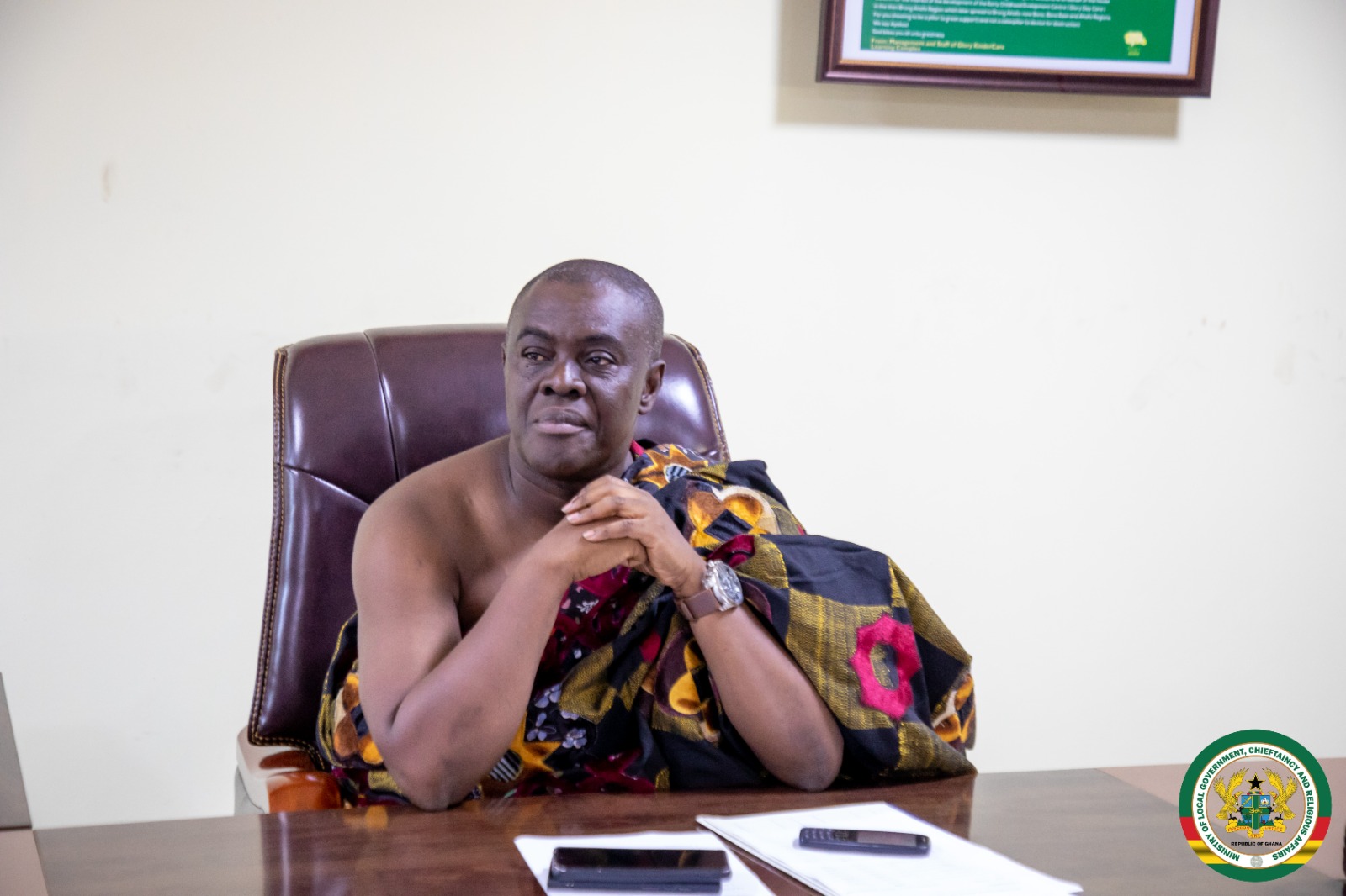 Welcoming the delegation, Hon. Ahmed Ibrahim underscored the essential place of traditional leadership in Ghana’s governance structure and assured the Omanhene that the Ministry remains committed to working closely with the Eastern Regional Traditional Council. He encouraged them to present their concerns openly, noting that their requests would be fully considered at the highest level.
