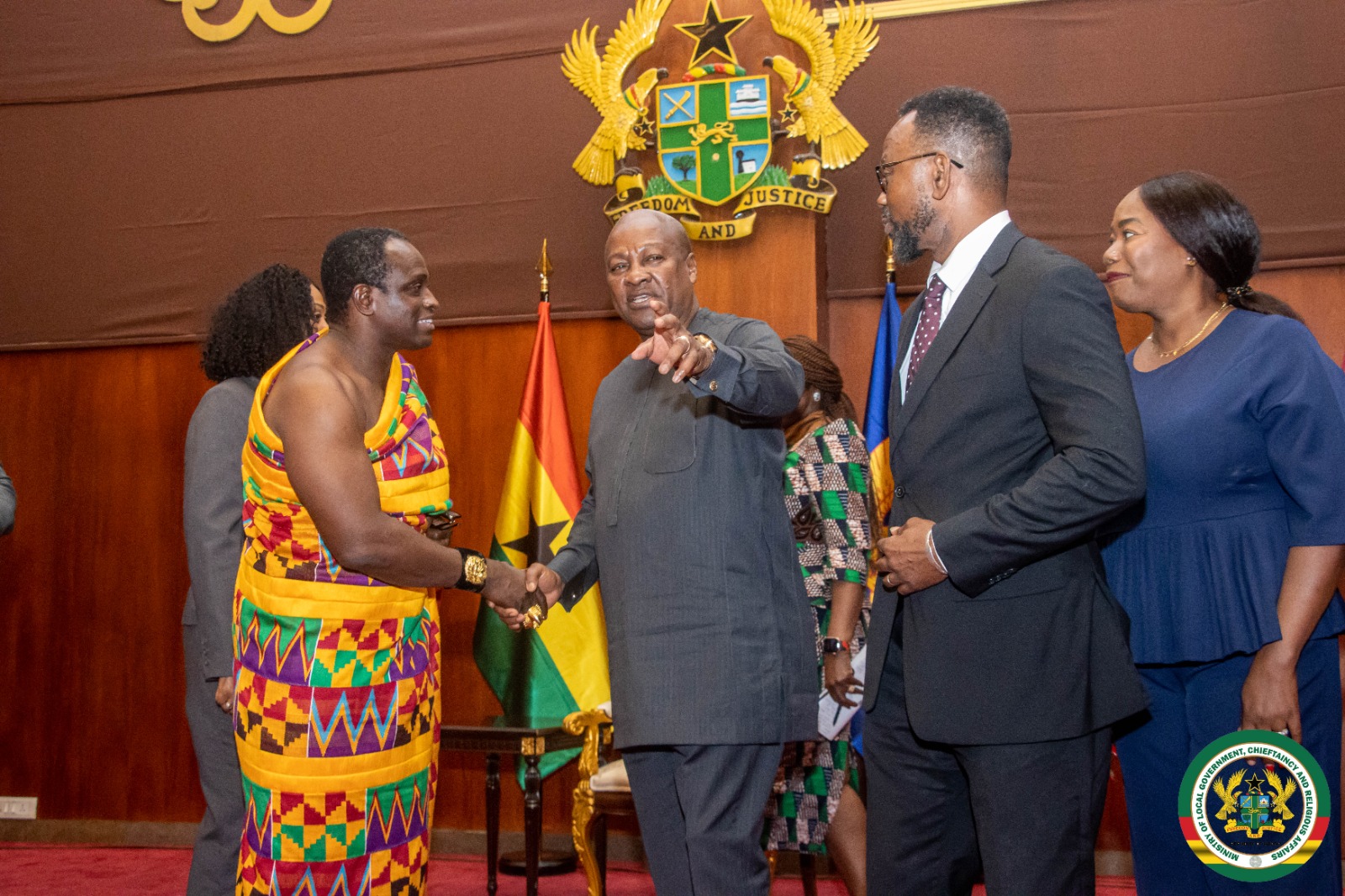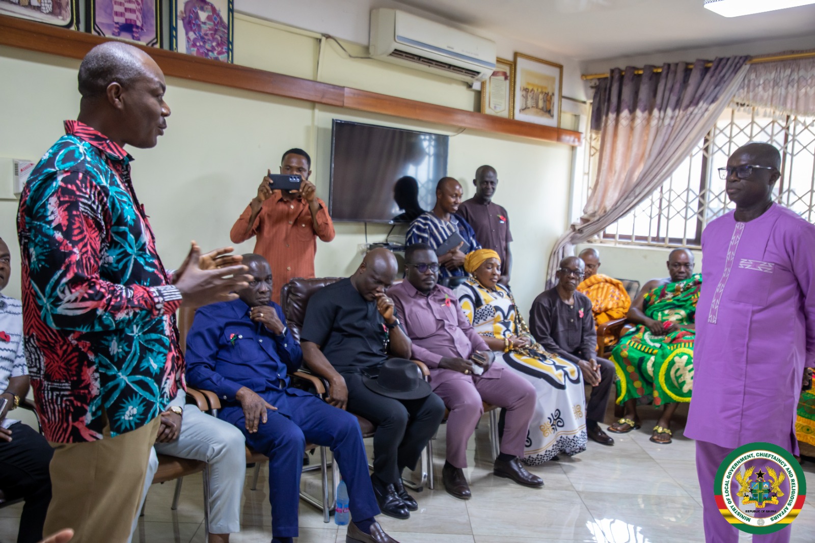 The Minister for Local Government, Chieftaincy and Religious Affairs, Hon. Ahmed Ibrahim, joined and led the delegation, consistent with the Ministry’s mandate to strengthen collaboration between government and traditional authorities.